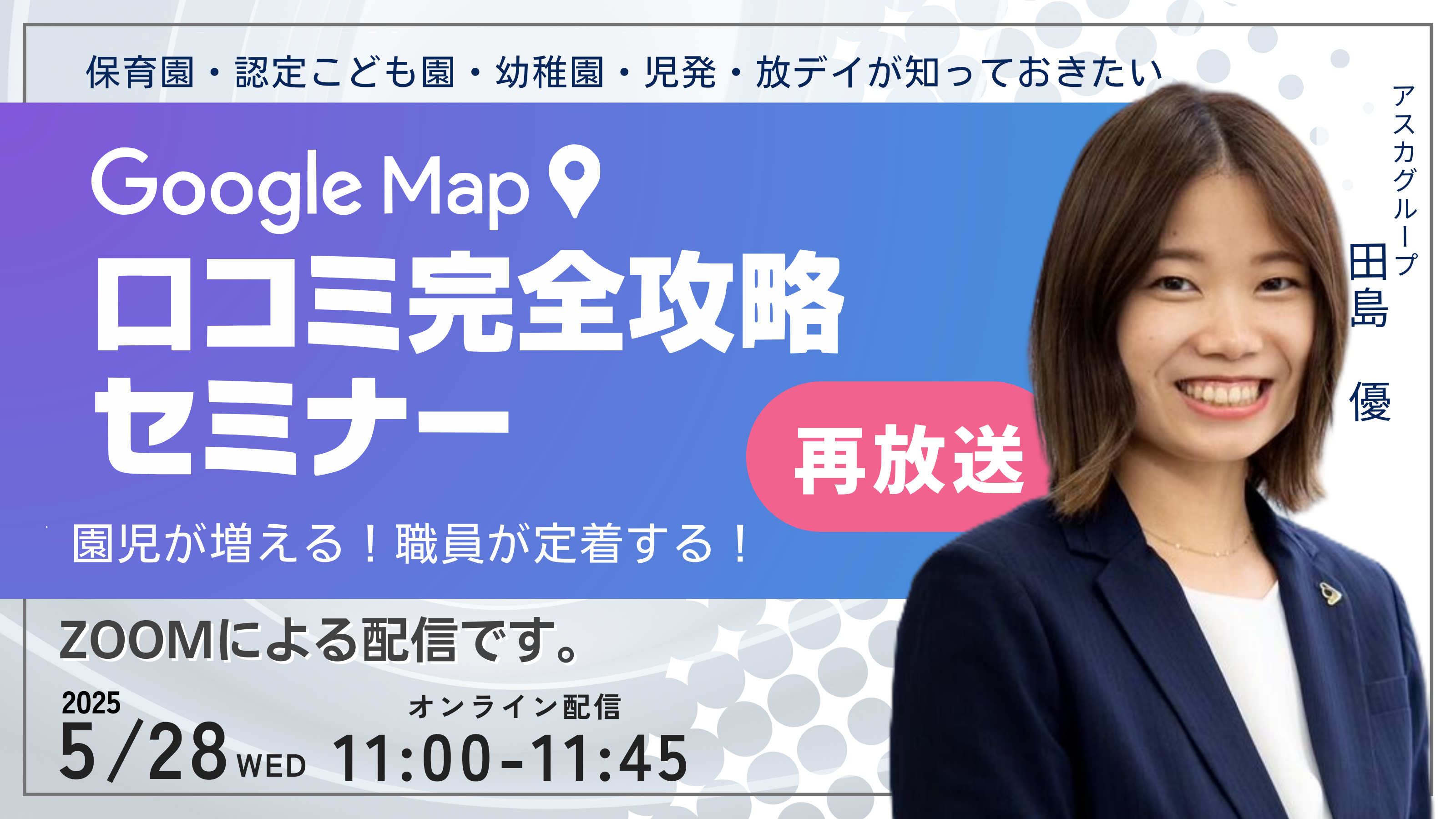 【5/28(水)再放送決定!】園児が増える!職員が定着する!GoogleMap×口コミ完全攻略セミナー【無料・オンライン】