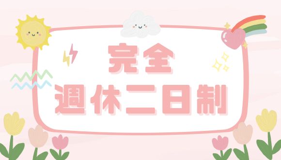 日曜、祝日 ◎土曜出勤した場合は、平日に振替休日がとれます。 ※土曜日勤務は月1~2回程度です。 ◎年末年始休暇:12/29~1/3 |