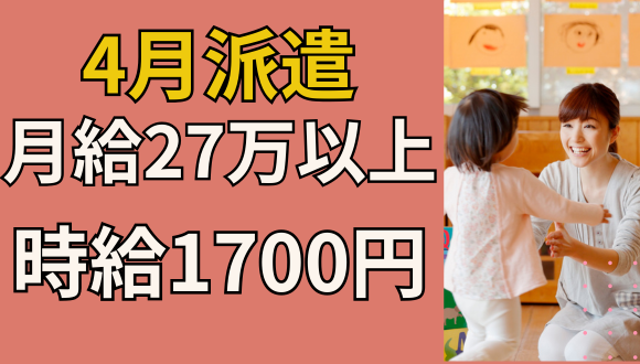 保育士/時給1700円【草加駅徒歩12分】月給27万以上もOK・週3日~OK・フルタイム歓迎・公立保育園・派遣パート・4月派遣