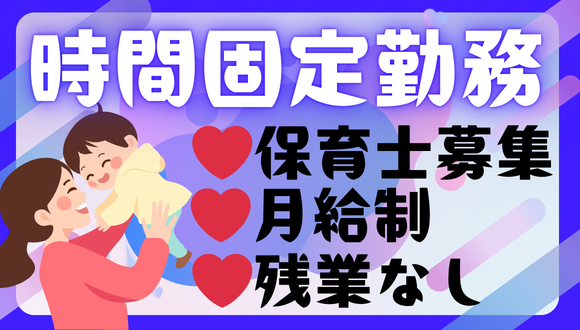 保育士/時間固定社員【月給制で安定】土日祝休み/残業なし/風通しのいい環境◎/ICT導入済/ユニフォーム支給あり
