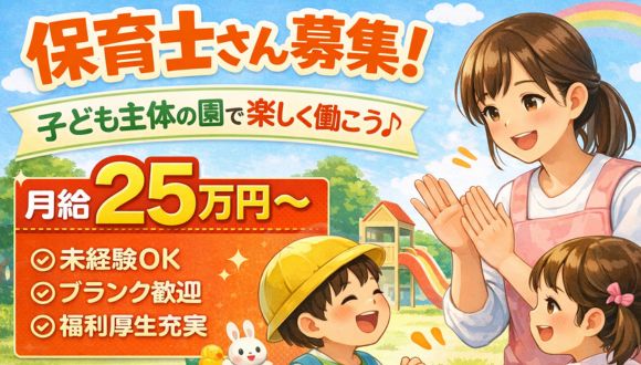 保育士【お子さん主体ののびのびとした園】手当充実◎/月給25万円~/お休みも調整しやすい♪/マイカー通勤OK/見学大歓迎