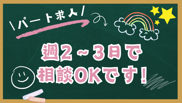 保育士/パート/14:00-18:00/週2~3日/車通勤OK/扶養内勤務OK/土日祝休み/未経験・ブランクOK/入職日相談OK