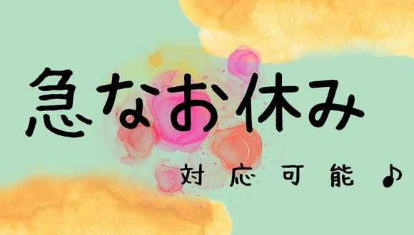 土曜、日曜、祝日 ■有給休暇:初年度10日間付与 ■年末年始休暇 ■お子さんの急な体調不良等のお休みも可能 |