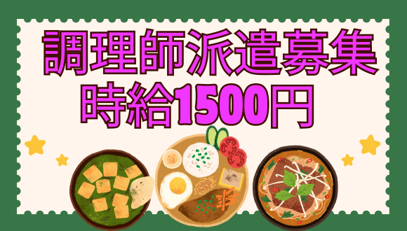 調理師/NEW!公立保育園【時給1500円】土日祝休み・8:30~17:00 or 8:30~13:00・派遣パート・120食