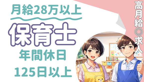 保育士/ 認可保育園/有給取得率高/借り上げ社宅◎/年間休日126日/高月給28万/園庭あり/大手株式が運営する保育園!