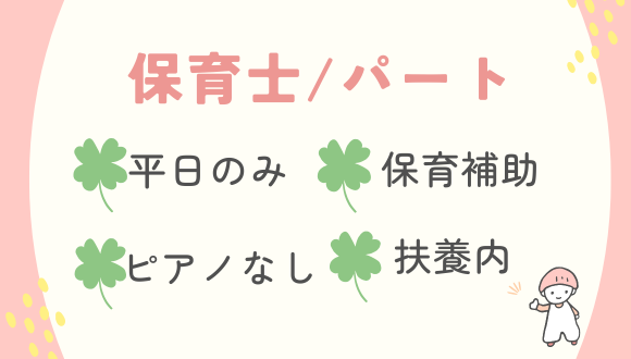 保育士/選べる勤務時間と日数/9:00~15:30の間実働4~6h/平日週3回からOK/土日祝お休み