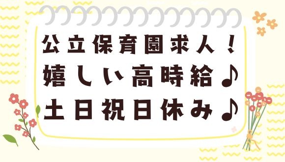 保育士/【令和8年4月~】地域最高水準の好待遇♪休憩がしっかりとれます!土日祝日休みの公立保育園のお仕事です♪