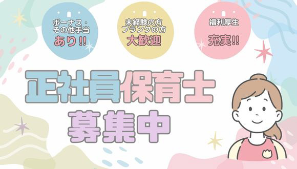 賞与: 年3回 / 合計4ヶ月資格 保育士 幼稚園教諭第一種 幼稚園教諭第二種 - 未経験OK