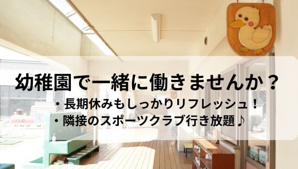 幼稚園教諭/年間休日132日/賞与3.6ヵ月/マイカー通勤歓迎◎/駐車場無料!/ITC可◎/隣接のスポーツクラブが無料で利用できます♪