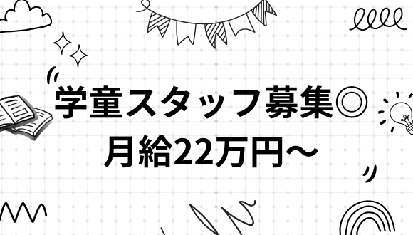 学童スタッフ【無資格OK】月給21万円~/実働7.75時間/お子さんが好きな方・体を動かすことがすきな方歓迎◎/賞与年2回/レア求人
