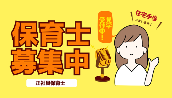 保育士/住宅手当あり/扶養手当あり/賞与年2回支給/定員80名/残業ほぼなし◎