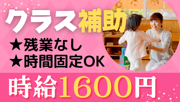 保育教諭/4月入職OK【高時給*時間固定勤務】クラス補助/勤務日数相談OK/残業なし/有給休暇付与/交通費全額支給/車通勤OK