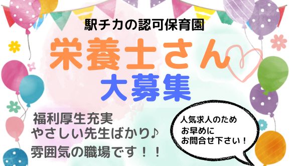 栄養士/駅チカ/月給23万以上/賞与4.2ヵ月/車通勤OK/お休み多めでプライベートも充実できます☆