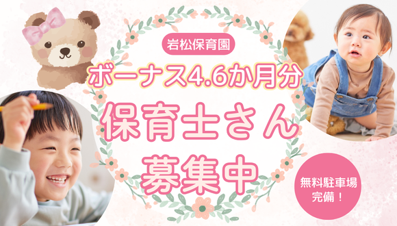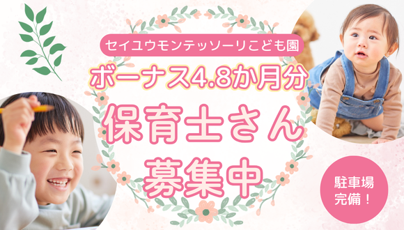 保育士/正社員/R8年4月~月給UP/《定員60名》/年間休日122日/借り上げ利用可◎/完全週休2日制★/賞与年2回!/福利厚生充実しております♪/残業ほぼなし!持ち帰りなし!