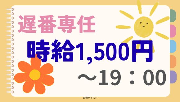 保育士*遅番専任♪時給1500円/週3~OK!~19時/WワークOK!車通勤OK/ネイル・髪色自由/即日勤務OK♪