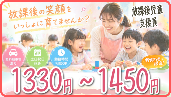 放課後児童支援員/経験ある方歓迎◎/学童保育/時給1330円から☆/子どもが好きな方・子育て経験を活かしたい方歓迎♪