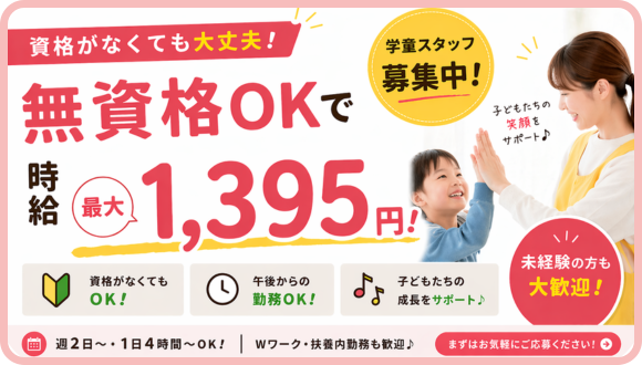 資格 放課後児童支援員 保育士 幼稚園教諭第一種 小学校教諭普通免許 中学校教諭普通免許 高等学校教諭普通免許 - 未経験OK