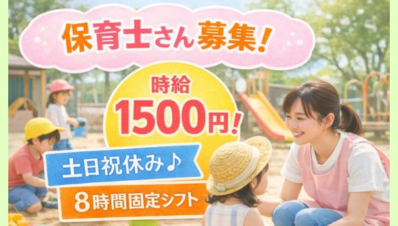 保育士【時給1500円】2026年4月入職もOK◎/8時間固定/土曜日お休み相談OK◎/風通しもよくお休み取りやすい環境/完全週休二日制