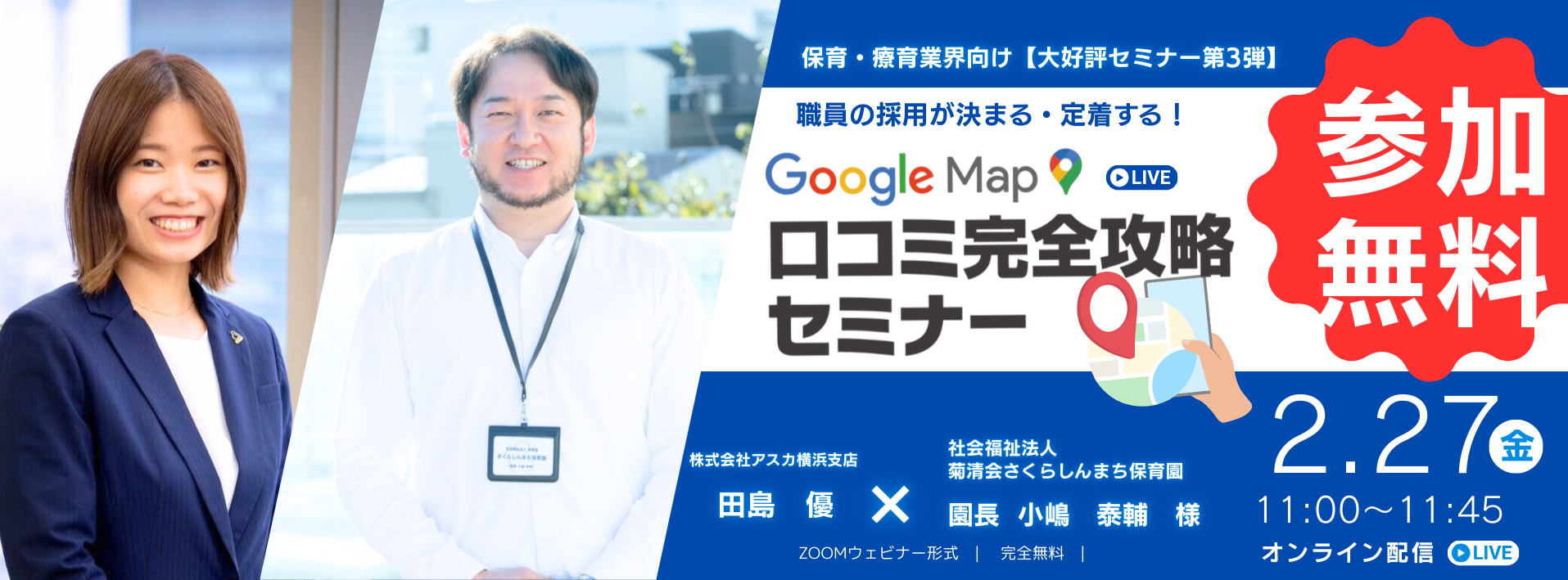 【アーカイブ配信中】園児が増える!職員が定着する!GoogleMap×口コミ完全攻略セミナー【無料・オンライン】